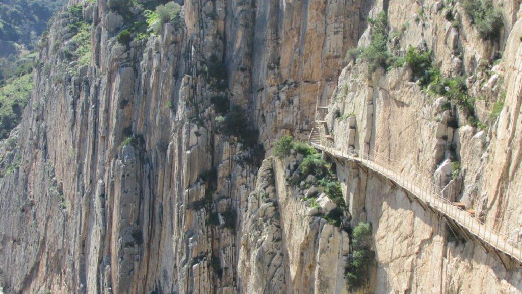 Weiter ins nah gelegene Abdalaijs. Wegen Luftraumverletzungen ist dort ein Flugverbot verhängt worden. Das störte uns nicht, wir könnten ja sowieso nicht fliegen. Wir wollen tauchen. Eintauchen in die Barranca des Caminito del Rey. In El Chorro, am Ausgangspunkt der Schluchtwanderung nimmt uns der Buschauffeur schon gleich alle Hoffnung. Für Wochenende muss man per Internet die Tickets bereits viel im Voraus buchen, sonst hat man null Chancen. Wir gingen trotzdem weiter bis zum Nordportal. Dass Beat dann am Eingang auf drei nette junge Damen aufmerksam wurde, die ausgerechnet 3(!) Tickets, fünf Minuten vor Abmarsch verhöckern wollten, weil deren Freunde nicht dabei sein konnten, das war doch kein Zufall mehr. Mit Helm und „Führer“ haben wir den Trail in 2 Stunden erlebt. Absolut empfehlenswert, siehe Bilder.