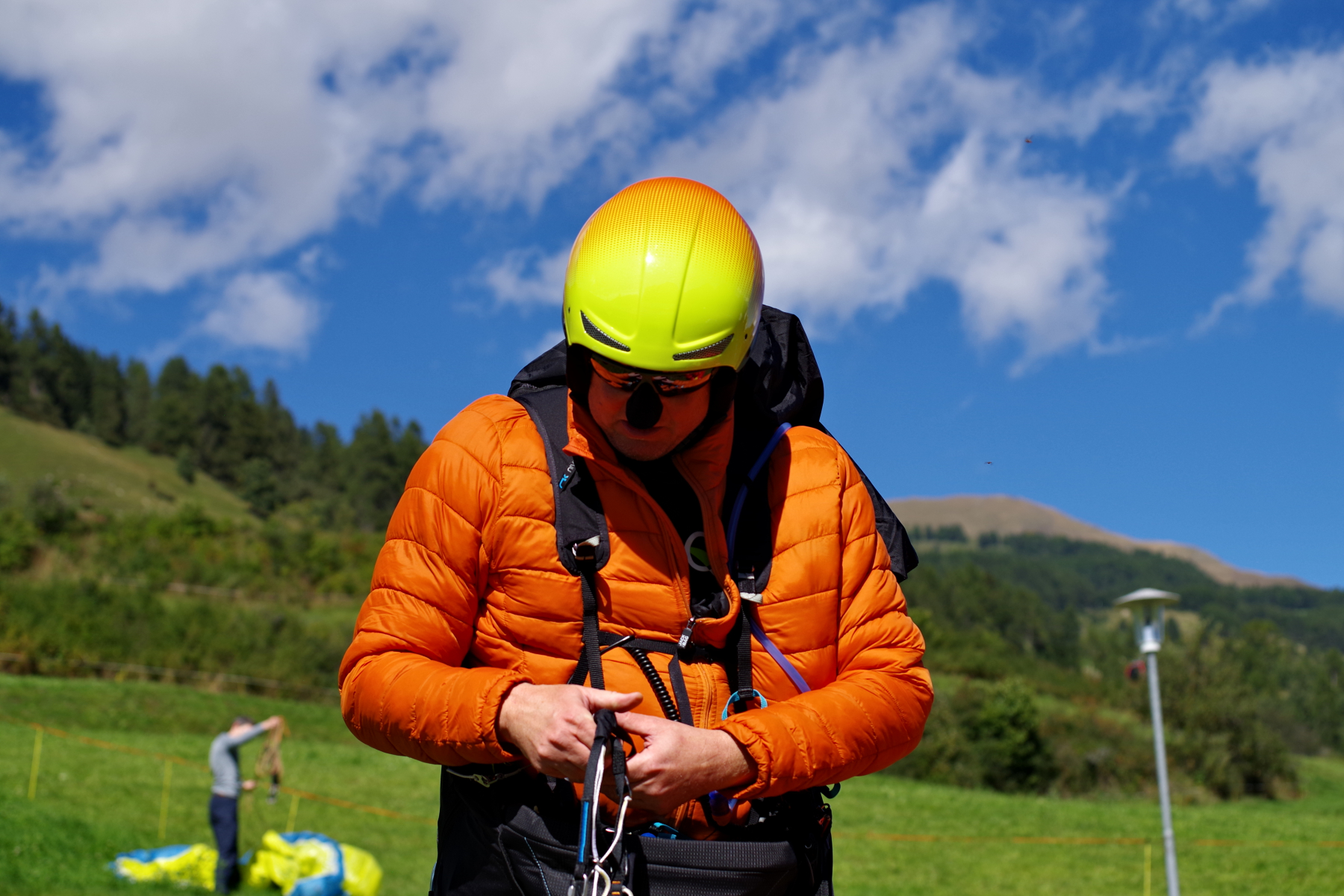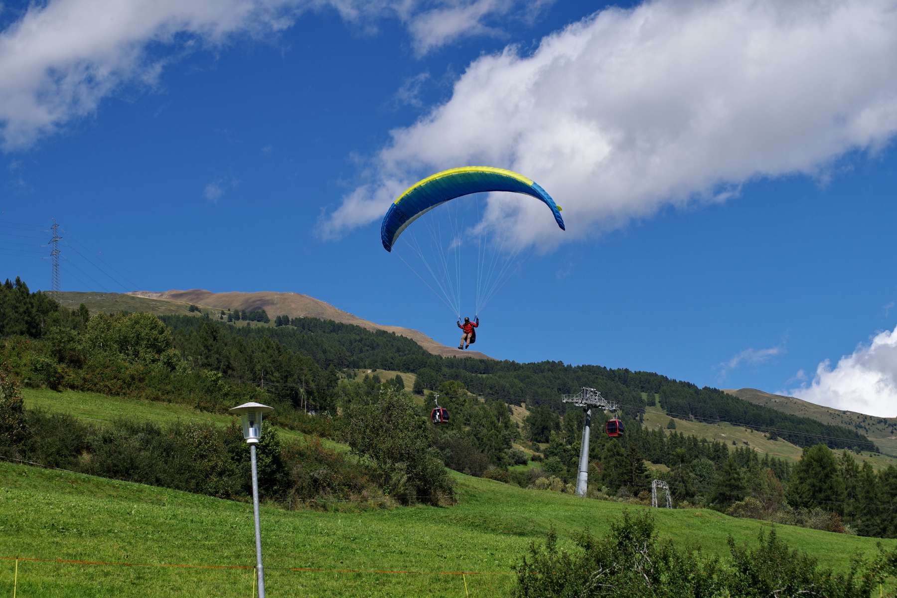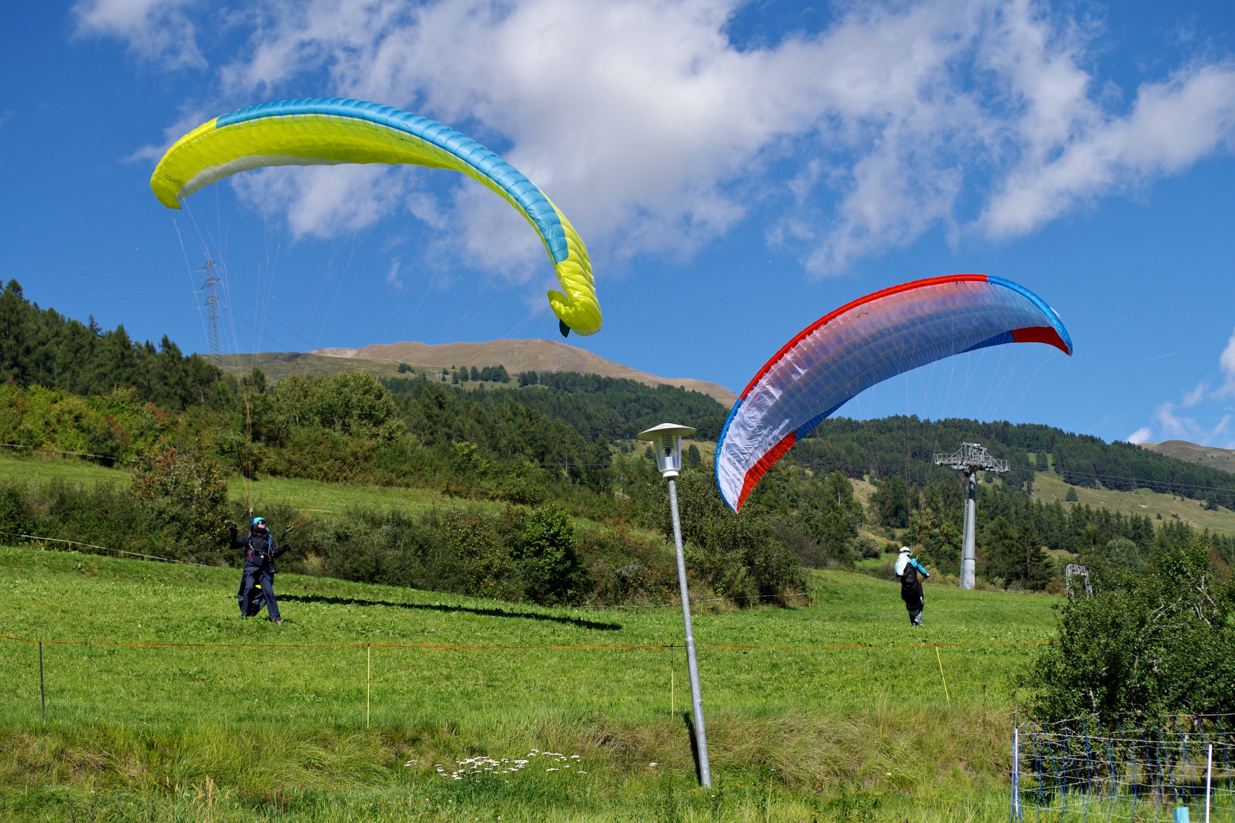 Am Sonntag war dann wieder um 9.00 Uhr das ausführliche Briefing von Beat angesagt. Die Mehrheit hat sich für Plan A – Scoul mit Option auf Plan B – Davos entschieden. Einige machten sich direkt auf den Heimweg. Plan A erwies sich als Volltreffer! Wir wurden erneut Zeugen wie der DPCH den Startplatz und bald auch den Luftraum über dem Skigebiet Motta Naluns übernommen hat. Alle 20 Pilotinnen und Piloten sind in die Luft gekommen – teilweise bis an die Basis auf rund 3250 Meter. Es war typisches Rückseitenwetter, wie Beat am Briefing erwähnt hat. Es war nicht ganz einfach zum Fliegen und man musste schon aufpassen, nicht zum Passagier am Schirm degradiert zu werden. Aber alle haben das super gemeistert und landeten rechtzeitig (der Bergwind wurde recht stark) und zufrieden beim Landeplatz. Wie schon tags zuvor mit der gewohnt heiteren Sprücheklopferei à la DPCH.