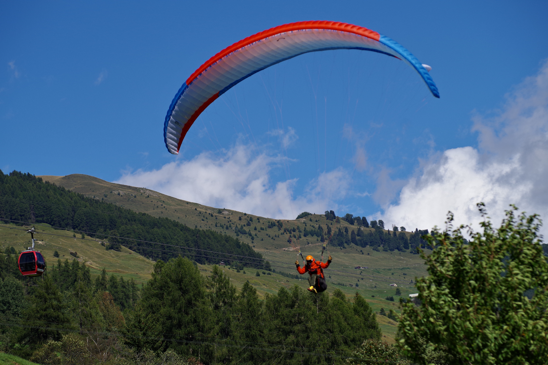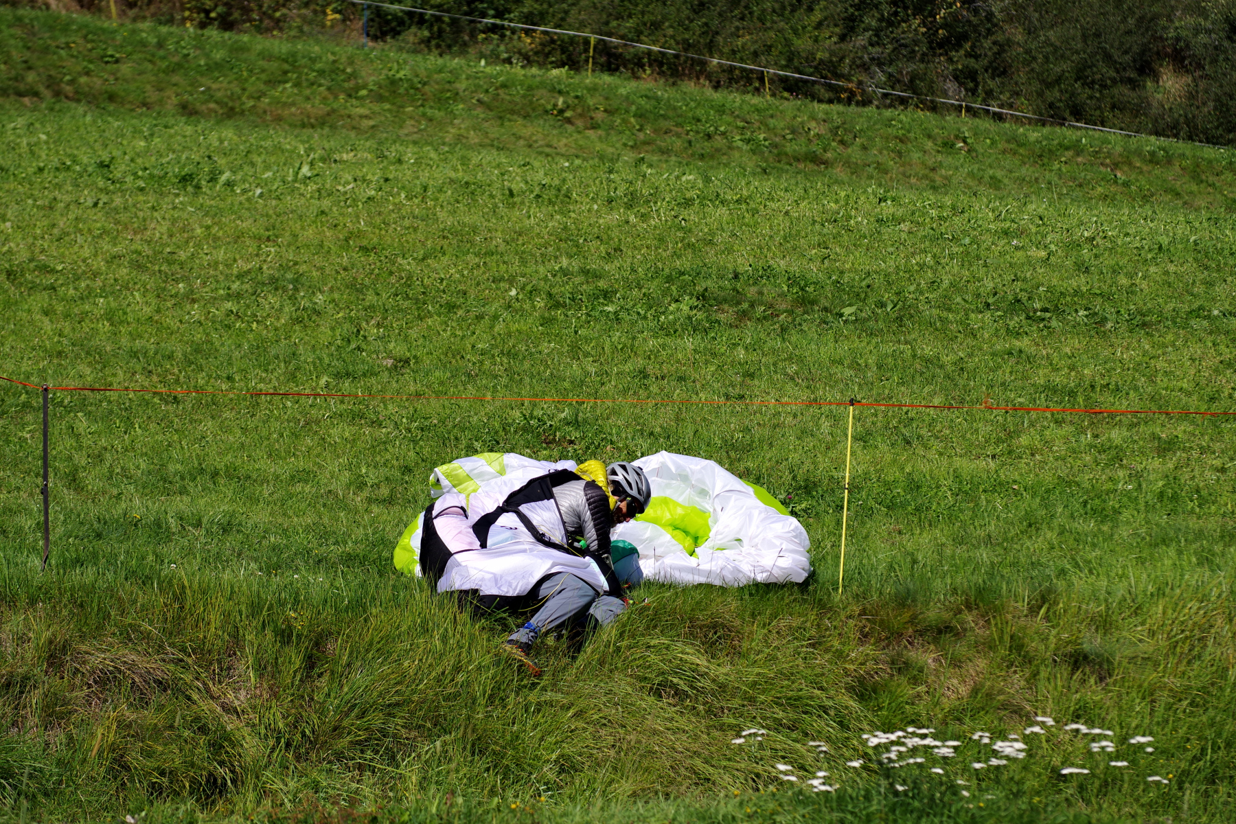 Etwas später war Treffpunkt vor dem Hotel für alle, die bequem mit der Gondel auf den Berg wollten. Einige hatten sogar ihr Fluggerät dabei. Wahrscheinlich einfach zum Durchlüften, denn auf dem Schönjoch hat der Wind ganz schön geblasen. Ein paar waren mit dem Bike unterwegs oder zu Fuss. Auf dem Schönjoch konnten wir dann gut beobachten, wie sich die Bewölkung langsam verzog und es tat sich doch noch ein Flugfenster auf. Das hat sich rasant herumgesprochen und wie aus dem Nichts trudelten aus gefühlt allen Richtungen unsere DPCH-Piloten zum Startplatz oberhalb der Mittelstation der Schönjochbahn ein. Mit der Gästekarte ist es kein Aufwand, kurz die Ausrüstung in der Unterkunft zu holen und an den Startplatz zu gondeln. Immerhin ein schöner Abgleiter lag drin und die gewohnt heitere Stimmung am Landeplatz durfte auch nicht fehlen – diesmal einfach in Fiss und nicht in Lauwil. Den Rest des Nachmittags nutzten die meisten individuell, einige entspannten im Hotelpool. Dank Helmis Restaurant-Empfehlung konnten wir diesen erlebnisreichen Tag miteinander bei einem gemütlichen Nachtessen abschliessen.