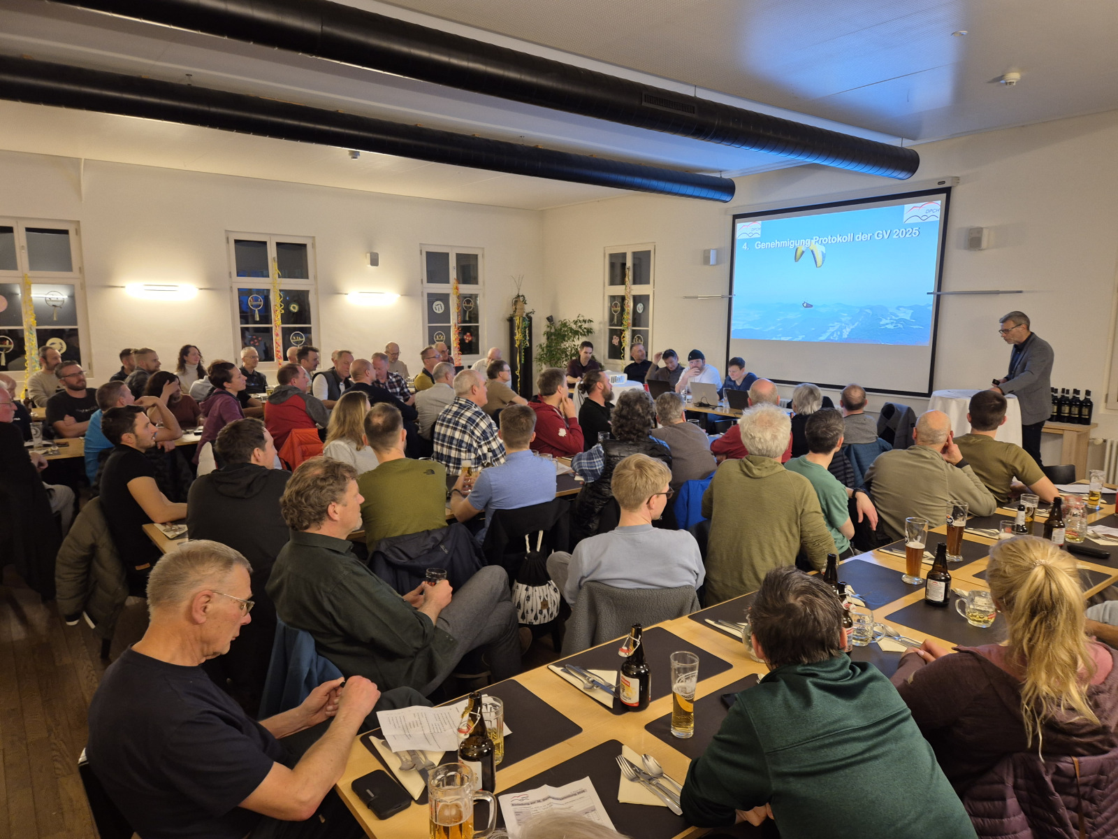 Ein besonderer Höhepunkt im Vereinsjahr war der Thermik-Höck mit Stephanie Westerhuis, Meteorologin bei SRF Meteo und leidenschaftliche Gleitschirmpilotin. Ihr Referat zum Thema Föhn zog über 100 Pilotinnen und Piloten an – ein neuer Besucherrekord! Auch die weiteren Thermik-Höcks wie etwa der traditionelle Chlaus-Höck waren sehr gut besucht und zeigen, wie wichtig der kameradschaftliche Austausch für unseren Club ist. Mit dem Notschirmwerfen sind wir bereits wieder ins neue Jahr gestartet – ein Beitrag zur Sicherheit unserer Mitglieder.