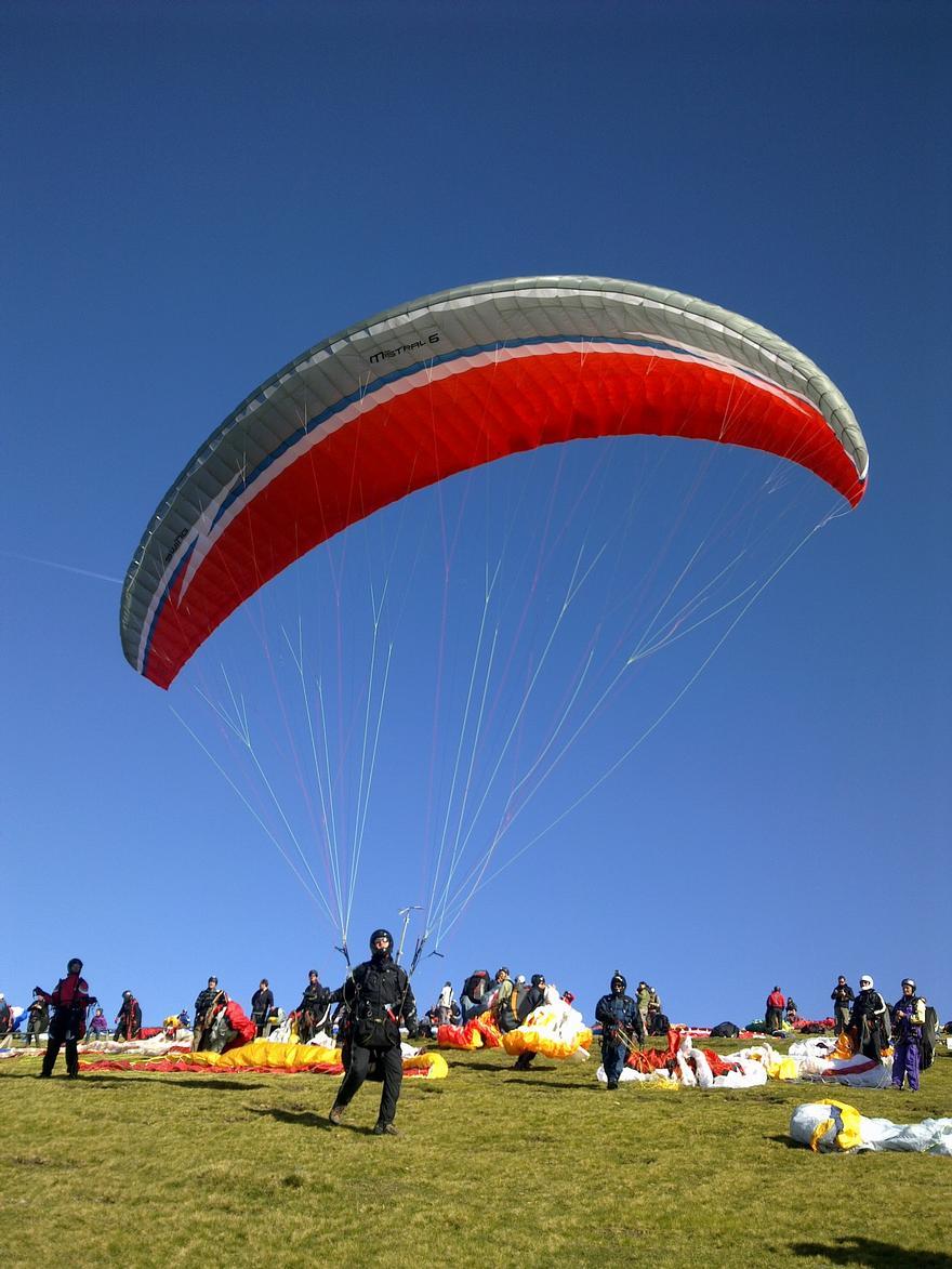 Dieser Aufmarsch war super und natürlich auch das Wetter. Das hat sich dann auch auf die „Bevölkerungsdichte“ auf dem Startplatz ausgewirkt. So ein Andrang von Gleitschirm- und Deltapiloten sieht man meist nur bei internationalen Wettkämpfen!