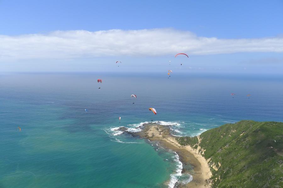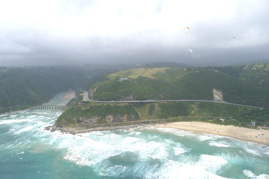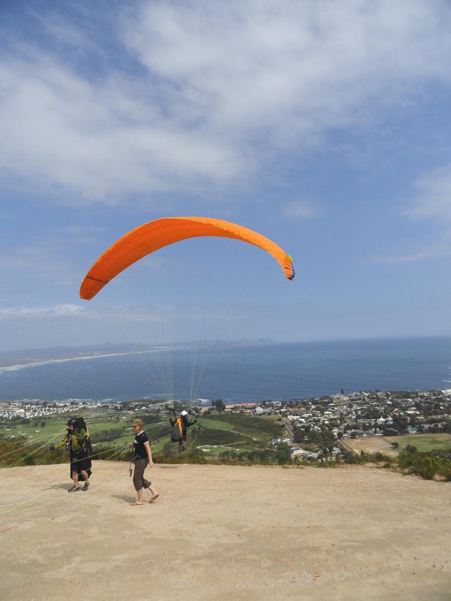Andy Flühler („Loset Lüüt“) arbeitet in Cape Town eng mit Barry Pederson und seiner Frau Candice von Birdmens Paragliding zusammen.Die erste Nacht verbrachten wir bei ihnen, von wo aus es am nächsten Tag früh morgens in einer ca. 6 stündigen Autofahrt nach Wilderness ging. Dort angekommen an der Map of Afrika gleich das erste Briefing, Schirm auspacken und Soaren der Küste entlang bei traumhaftem Wetter.