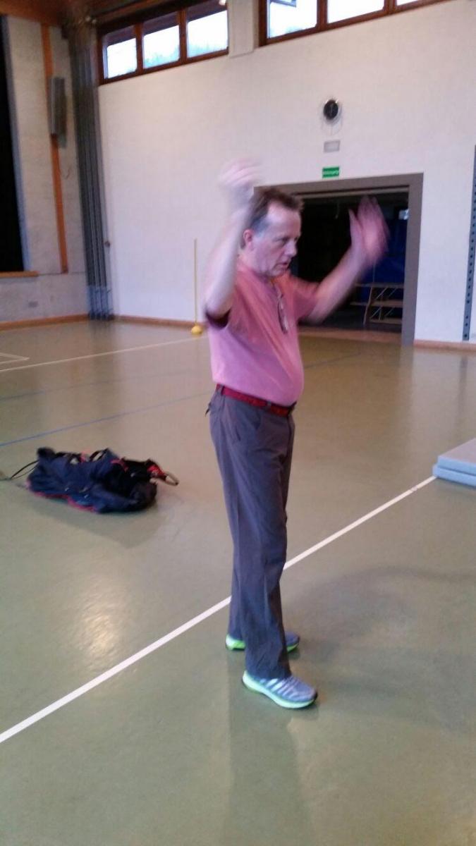 Heinz hat dann mit jedem Piloten und jeder Pilotin die Spezialitäten des jeweiligen Notschirms und der Aufhängung am Gurtzeug besprochen, Problematiken gezeigt, Auslösungen mit der linken und rechten Hand besprochen und zum Teil kleine Verbesserungen für eine sicherere Auslösung vorgeschlagen. Erst dann wurde jede und jeder herumgewirbelt, damit er oder sie unter schwierigen Bedingungen den Notschirm in eine vorbestimmte Richtung werfen konnte. Dabei hat sich wieder einmal mehr gezeigt, dass das Werfen recht anspruchsvoll ist.