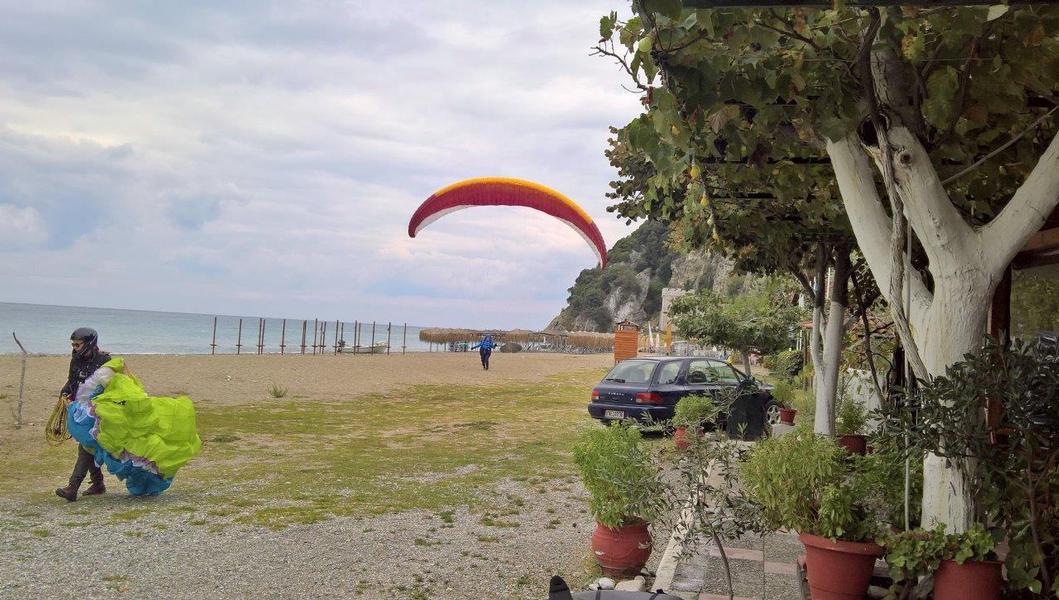 Am letzten Tag konnte ich noch einen kleinen CC Flug entlang des Olymps Richtung Meer machen und auf 2400 m hochsteigen. Da war‘s allerdings schon etwas frisch. Abends genossen wir und die Paraworld-Truppe einen Hammel am Spiess in Kalipefki. Wir haben noch nie so guten Pommes frites dazu gegessen wie dort oben im Kartoffeltal.
