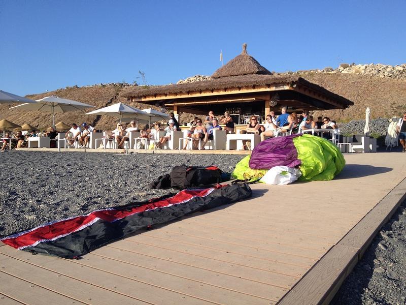 Im Norden nahm der Wind nach dem dritten Tag stark zu und somit ermöglichte uns der Taucho im Süden für die bevorstehenden Tage das Fliegen im Lee des grössten Berges der Insel – El Teilde.  Durch die gute Thermik konnten die Piloten schöne Flüge geniessen und direkt am Strand landen. Ein anschliessendes kühles Bier bei sommerlichen Temperaturen haben dem Tag einen krönenden Abschluss gegeben.